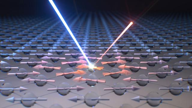 Researchers use a technique called resonant inelastic X-ray scattering, or RIXS, to study the electronic behavior of quantum materials. The image above illustrates an ultrabright X-ray striking a quantum material’s electrons (gray circles) and scattering off the sample. In this example, the X-ray’s…