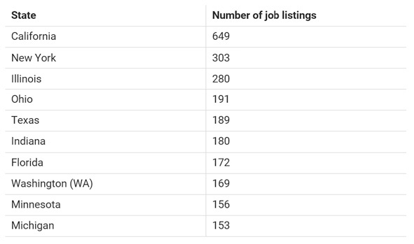 6. California led the nation in the number of job listings, followed by Illinois and New York