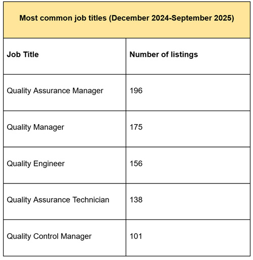 8. ‘Quality Assurance Manager’ and ‘Quality Manager’ were the most frequent job titles