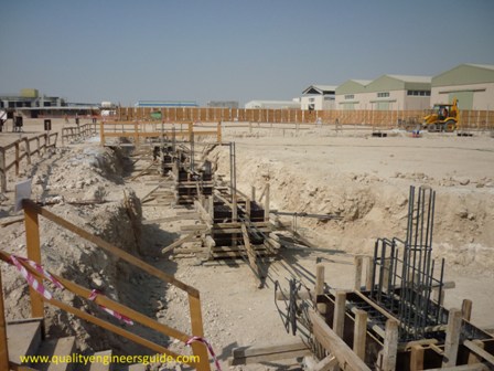 If you are in Abu Dhabi-UAE, the footing should be inspected by the Municipality Inspector so that is the hold there and also the Materials to be used like concrete, rebars and the test report for FDT.