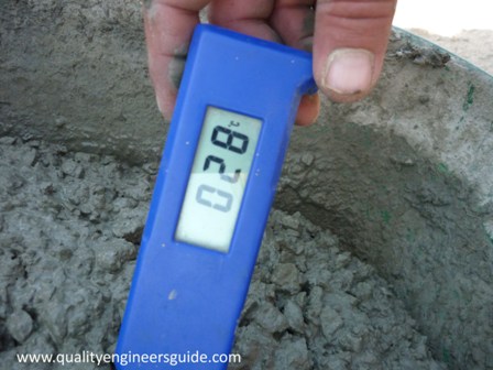 - Slump shall not be more than 150mm and not less than 100mm as per Engineers instruction and approval. Temperature of fresh concrete shall not be more than 30 deg. Celsius as per BS Standard.