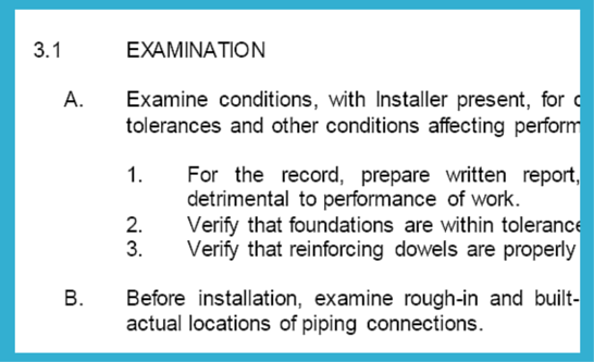 And third, if you find the word “Test” this one will be another an activity that you should write. If the activity, for example, is block works, then that’s usually written in the specification “test of block sample” or sometimes “test of mortar.”