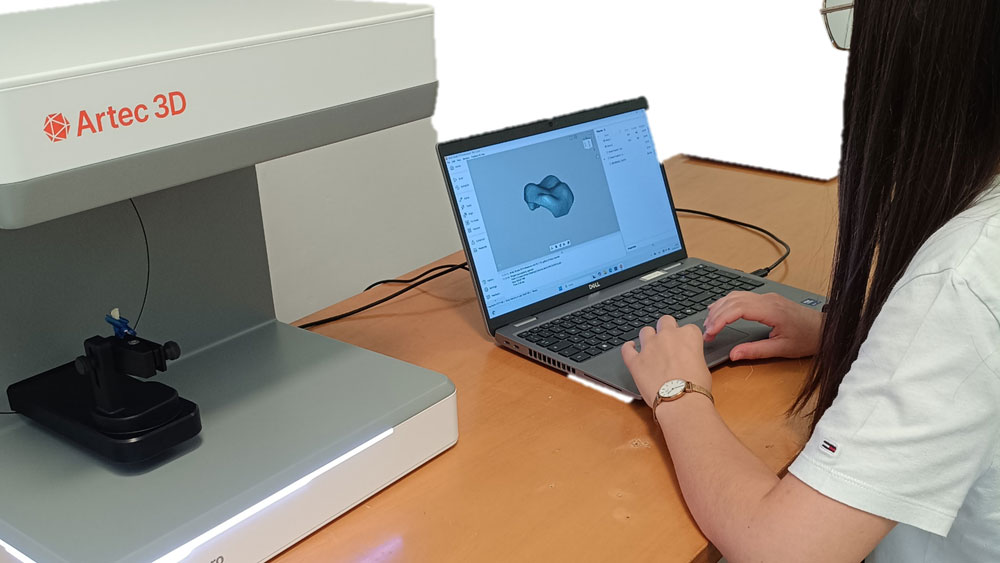 A student at the University of Perugia 3D scanning an implant with Artec Micro II.