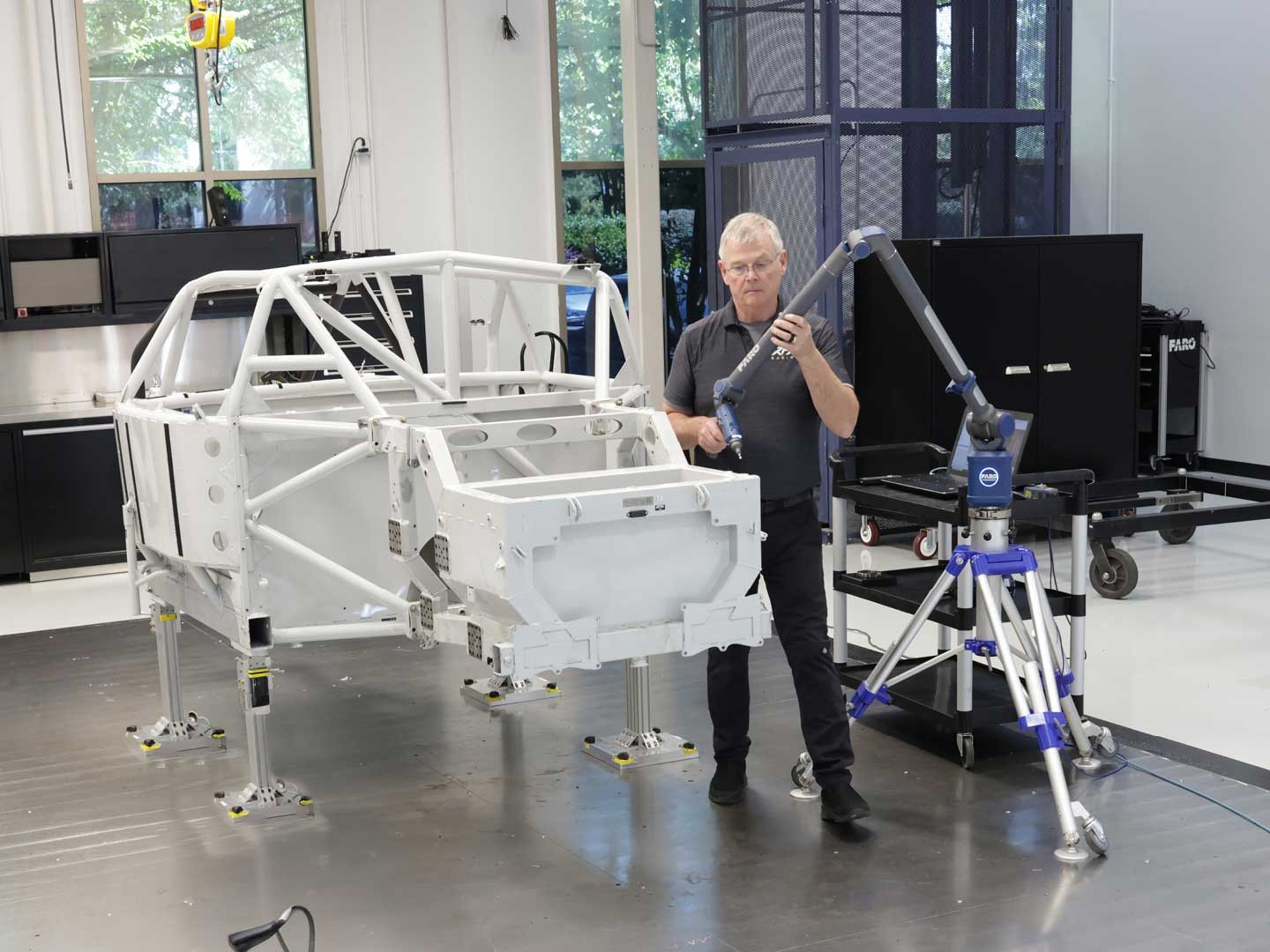 Figure 4a: An automobile frame being measured with a Quantum X FaroArm. Credit: FARO, a business of AMETEK.