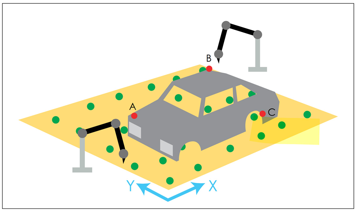 This kind of error can also happen in a manufacturing environment when measuring large objects, such as an entire car frame or an aircraft wing. In those cases, it’s often necessary to leapfrog measurement equipment.