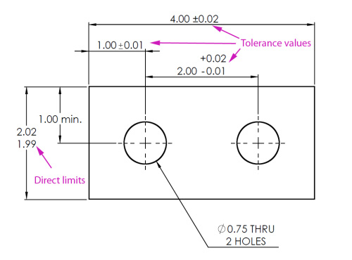 No part can be made exactly to specification. There will always be some error in the process that makes that part. So, when parts are designed, the designers tell the machinist, in the case of a machined part, just how much error is acceptable—the tolerance. Tolerances appear on most dimensions in an engineering drawing, like the one shown in Figure 1, where the overall width of that part is 4.00 ±0.02. That means that, once built, that dimension must be between 3.98 to 4.02.