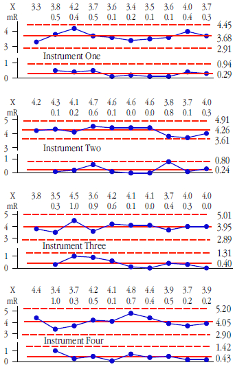 Figure 1: Consistency charts for instruments 1, 2, 3, & 4